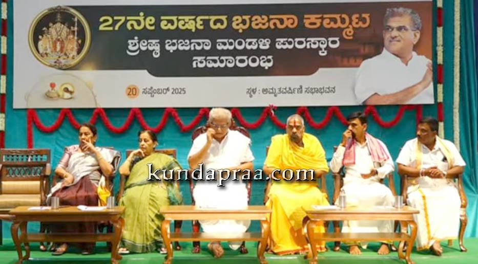 ಕುಂದಾಪ್ರ ಡಾಟ್ ಕಾಂ ಸುದ್ದಿ. ಬೈಂದೂರು: ತಾಲೂಕಿನ ಉಪ್ಪುಂದ ಗ್ರಾಮದ ಶ್ರೀರಾಮ ಭಜನಾ ಮಂಡಳಿ ಅಮ್ಮನವರತೋಪ್ಲು, ಶ್ರೀ ಧರ್ಮಸ್ಥಳ ಮಂಜುನಾಥೇಶ್ವರ ಭಜನಾ ಪರಿಷತ್, ಶ್ರೀ ಕ್ಷೇತ್ರ ಧರ್ಮಸ್ಥಳ ಇವರ ವತಿಯಿಂದ 27ನೇ ವರ್ಷದ ಭಜನಾ ಕಮ್ಮಟ ಶ್ರೇಷ್ಠ ಭಜನಾ ಮಂಡಳಿ ಪುರಸ್ಕಾರ ಸಮಾರಂಭವು ಅಮೃತವರ್ಷಿಣಿ ಸಭಾಭವನದಲ್ಲಿ ಇತ್ತೀಚಿಗೆ ಜರುಗಿತು.