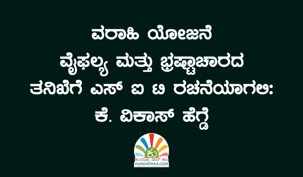 ಕುಂದಾಪುರ: ವರಾಹಿ ಯೋಜನೆ ವೈಫಲ್ಯ ಮತ್ತು ಭ್ರಷ್ಟಾಚಾರದ ತನಿಖೆಗೆ ಎಸ್ ಐ ಟಿ ರಚನೆಯಾಗಲಿ ಎಂದು ಕುಂದಾಪುರದ ರೈತ ಮುಖಂಡ ಕೆ. ವಿಕಾಸ್ ಹೆಗ್ಡೆ ಹೇಳಿದರು.