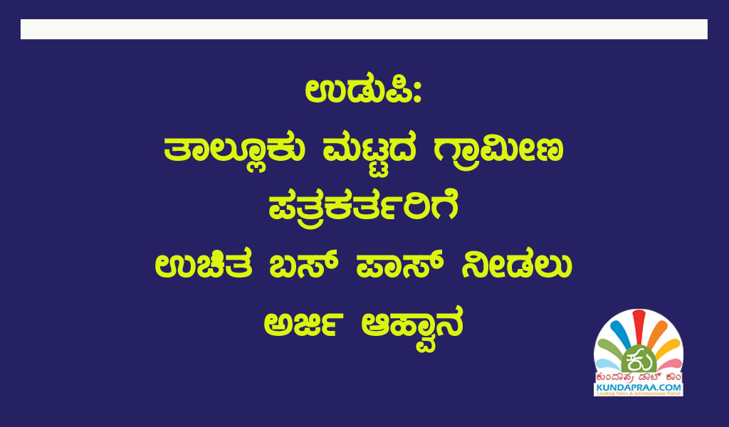 ಉಡುಪಿ: ವಾರ್ತಾ ಮತ್ತು ಸಾರ್ವಜನಿಕ ಸಂಪರ್ಕ ಇಲಾಖೆಯ ಮಾಧ್ಯಮ ಪಟ್ಟಿಯಲ್ಲಿರುವ ಮಾಧ್ಯಮ ಸಂಸ್ಥೆಗಳಲ್ಲಿ ಕಾರ್ಯ ನಿರ್ವಹಿಸುತ್ತಿರುವ ತಾಲ್ಲೂಕು ಮಟ್ಟದ ಪತ್ರಕರ್ತರು ತಮ್ಮ ವೃತ್ತಿ ನಿರತ ಚಟುವಟಿಕೆಗಳ ಸಂಬಂಧ ತಮ್ಮ ಜಿಲ್ಲಾದ್ಯಂತ ಉಚಿತವಾಗಿ ಸಂಚರಿಸಲು ಅನುಕೂಲವಾಗುವಂತೆ ಉಚಿತ ಬಸ್ ಪಾಸ್ ನೀಡಲು ಅರ್ಜಿಗಳನ್ನು ಆಹ್ವಾನಿಸಲಾಗಿದೆ.