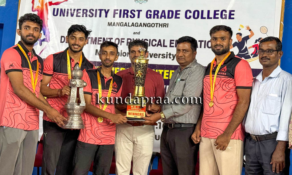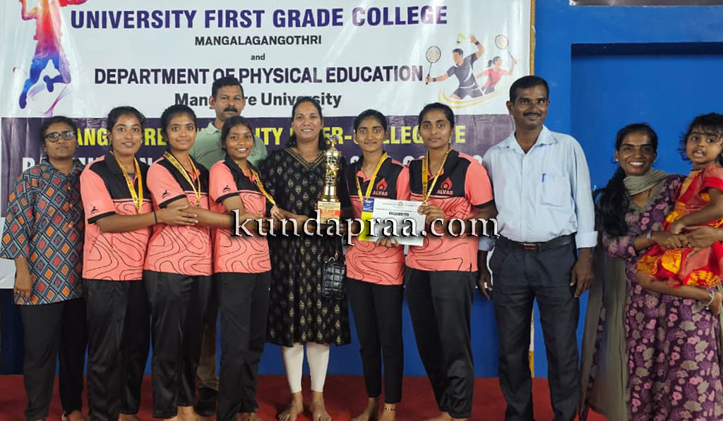 ಮೂಡುಬಿದಿರೆ: ಮಂಗಳಗಂಗೋತ್ರಿಯ ವಿಶ್ವವಿದ್ಯಾನಿಲಯ ಪ್ರಥಮ ದರ್ಜೆ ಕಾಲೇಜಿನಲ್ಲಿ ನಡೆದ ಮಂಗಳೂರು ವಿವಿ ಅಂತರಕಾಲೇಜು ಬ್ಯಾಡ್ಮಿಂಟನ್ ಚಾಂಪಿಯನ್ಶಿಪ್ನಲ್ಲಿ ಆಳ್ವಾಸ್ ಕಾಲೇಜಿನ ಪುರುಷರ ತಂಡ 19ನೇ ಬಾರಿ ಚಾಂಪಿಯನ್ಸ್ ಪಟ್ಟವನ್ನು ಅಲಂಕರಿಸಿತು.