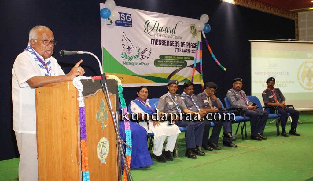 ಅವರು ಭಾನುವಾರ ಮೂಡಬಿದಿರೆಯ ಭಾರತ್ ಸ್ಕೌಟ್ಸ್ ಅಂಡ್ ಗೈಡ್ಸ್ ಕನ್ನಡ ಭವನದಲ್ಲಿ ಭಾರತ್ ಸ್ಕೌಟ್ಸ್ ಅಂಡ್ ಗೈಡ್ಸ್ ರಾಷ್ಟ್ರೀಯ ಪ್ರಧಾನ ಕಚೇರಿ, ಕರ್ನಾಟಕ ರಾಜ್ಯ ಘಟಕ, ದಕ್ಷಿಣ ಕನ್ನಡ ಘಟಕ ಹಾಗೂ ಆಳ್ವಾಸ್ ಶಿಕ್ಷಣ ಪ್ರತಿಷ್ಠಾನದ ಸಂಯುಕ್ತ ಆಶ್ರಯದಲ್ಲಿ ನಡೆದ ಭಾರತ್ ಸ್ಕೌಟ್ಸ್ ಆ್ಯಂಡ್ ಗೈಡ್ಸ್ನ ರಾಷ್ಟ್ರ ಮಟ್ಟದ ‘ಮೆಸೆಂಜರ್ ಆಫ್ ಪೀಸ್ ಸ್ಟಾರ್ ಅವಾರ್ಡ್ 2023’ ಹಾಗೂ ರಾಷ್ಟ್ರಪತಿ ಪುರಸ್ಕಾರ -2016 ಪ್ರಶಸ್ತಿ ಪ್ರದಾನ ಸಮಾರಂಭದಲ್ಲಿ ಮಾತನಾಡಿದರು.