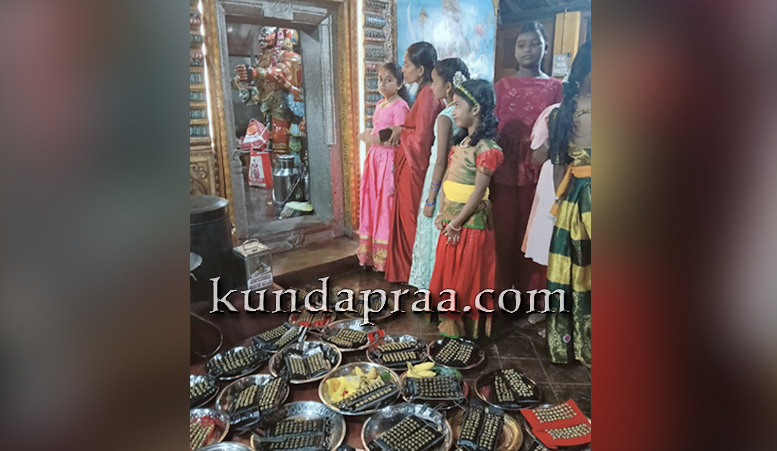 ಕುಂದಾಪುರ: ಇಲ್ಲಿನ ಬಸ್ರೂರು ನಾಟ್ಯಾಂಜಲಿ ಕಲಾ ನಿಕೇತನದಲ್ಲಿ ನೃತ್ಯಗುರು ವಿದುಷಿ ಕಲಾಶ್ರೀ ಪುನೀತ್ ಆಚಾರ್ಯ ಅವರು ತಮ್ಮ ನೃತ್ಯ ಶಿಷ್ಯೆಯರಿಗೆ ಗೆಜ್ಜೆಪೂಜೆ ಕಾರ್ಯಕ್ರಮವನ್ನು ಬಸ್ರೂರಿನ ಶ್ರೀ ದೇವಿ ಅಮ್ಮನವರ ದೇವಸ್ಥಾನದಲ್ಲಿ ಏರ್ಪಡಿಸಿದ್ದರು.