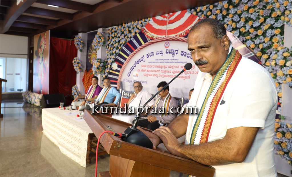 ಅವರು ಶನಿವಾರ ಇಲ್ಲಿನ ಭಂಡಾರ್ಕಾರ್ಸ್ ಕಾಲೇಜಿನಲ್ಲಿ ಎರಡು ದಿನಗಳ ಕಾಲ ನಡೆಯುವ ರಾಜ್ಯೋತ್ಸವ ಯಕ್ಷಗಾನ ತಾಳಮದ್ದಳೆ 50ನೇ ವರ್ಷದ  ಕಾರ್ಯಕ್ರಮ “ಸುವರ್ಣಾಕ್ಷ” ನನ್ನು ಉದ್ಘಾಟಿಸಿ ಮಾತನಾಡಿದರು . ಮುಂದಿನ ಪೀಳಿಗೆಗೆ ಸಂಸ್ಕೃತಿಯನ್ನು ಉಳಿಸುವಲ್ಲಿ  ಕರ್ನಾಟಕದ ಸಾಂಸ್ಕೃತಿಕ ಕಲೆ ಯಕ್ಷಗಾನವು ಬಹುದೊಡ್ಡ ಪಾತ್ರ ವಹಿಸಿದೆ. ಕಳೆದ 3 ವರ್ಷಗಳಿಂದ ಕುಂದಾಪುರದ 22 ಪ್ರೌಢಶಾಲೆಗಳಲ್ಲಿ ಯಕ್ಷಗಾನ ತರಬೇತಿ ನೀಡಿ ವಿದ್ಯಾರ್ಥಿಗಳಿಂದ ಪ್ರದರ್ಶನ ಏರ್ಪಡಿಸಲಾಗುತ್ತದೆ. ಇದರಿಂದ ಭಾಷಾ ಶುದ್ಧಿ ಮತ್ತು ನಿರರ್ಗಳತೆ, ಅಧ್ಯಯನಕ್ಕೂ ಸಹ ಸಹಕಾರಿಯಾಗುತ್ತದೆ.  ಅಲ್ಲದೆ ಕಲಿಕೆಗೆ ಒಳ್ಳೆಯ ವ್ಯವಸ್ಥೆಯಾಗುತ್ತದೆ.