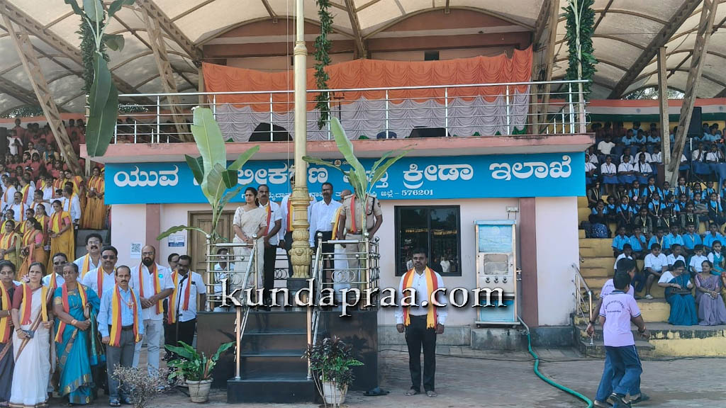 ರಾಜ್ಯೋತ್ಸವದ ಸಂದೇಶ ಹಾಗೂ ಧ್ವಜಾರೋಹಣವನ್ನು ರಶ್ಮಿ ಎಸ್.ಆರ್.ಕ.ಆ.ಸೇ. ಸಹಾಯಕ ಆಯುಕ್ತರು ಕುಂದಾಪುರ ಉಪ ವಿಭಾಗ ನೆರವೇರಿಸಿದರು.