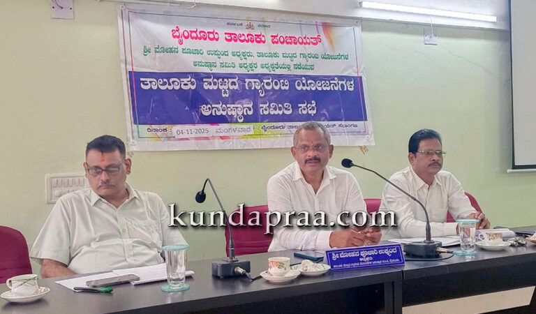 ಅವರು ಇಲ್ಲಿನ ತಾಲೂಕು ಪಂಚಾಯಿತಿ ಸಭಾಂಗಣದಲ್ಲಿ ಮಂಗಳವಾರ ನಡೆದ ಗ್ಯಾರಂಟಿ ಅನುಷ್ಠಾನ ಯೋಜನೆಯ ಪ್ರಗತಿ ಪರಿಶೀಲನಾ ಸಭೆಯ ಅಧ್ಯಕ್ಷತೆ ವಹಿಸಿ ಮಾತನಾಡಿದರು. ಬೈಂದೂರು ಕೆ.ಎಸ್.ಆರ್.ಟಿ.ಸಿ ಬಸ್ ನಿಲ್ದಾಣವನ್ನು ಮುಖ್ಯಮಂತ್ರಿಗಳು ಸದ್ಯದಲ್ಲಿಯೇ ಉದ್ಘಾಟಿಸಲಿದ್ದು, ಬಾಕಿ ಇರುವ ಕಾಮಗಾರಿಗಳನ್ನು ಶೀಘ್ರ ಪೂರ್ಣಗೊಳಿಸುವಂತೆ ತಿಳಿಸಿದರು.