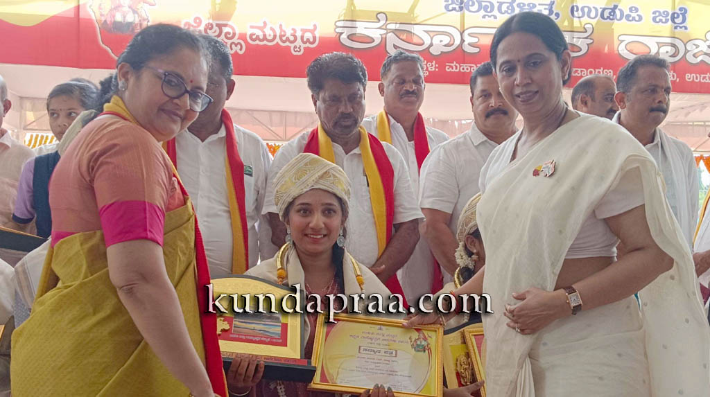 ಕುಂದಾಪುರ: ಇಲ್ಲಿನ ಬಸ್ರೂರು ಶ್ರೀ ಶಾರದಾ ಕಾಲೇಜಿನ ಅಂತಿಮ ಬಿ.ಕಾಂ ವಿದ್ಯಾರ್ಥಿನಿಯಾದ ನಯನ ಎಂ. ನಾಯ್ಕ್ ಅವರು ಕ್ರೀಡಾ ಕ್ಷೇತ್ರದಲ್ಲಿ ಗಳಿಸಿದ ವಿಶಿಷ್ಟ ಸಾಧನೆಗೆ ’ಉಡುಪಿ ಜಿಲ್ಲಾ ಮಟ್ಟದ ಕನ್ನಡ ರಾಜ್ಯೋತ್ಸವ ಪ್ರಶಸ್ತಿ’ಯನ್ನು ಪಡೆದಿರುತ್ತಾರೆ.