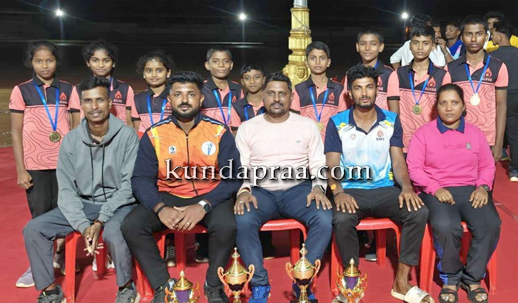 ಮೂಡುಬಿದಿರೆ: ಉಪ ನಿರ್ದೇಶಕರ ಕಾರ್ಯಾಲಯ, ಶಾಲಾ ಶಿಕ್ಷಣ ಇಲಾಖೆ ಗದಗ, ಕೆ.ಹೆಚ್ ಪಾಟೇಲ್ ಜಿಲ್ಲಾ ಕ್ರೀಡಾಂಗಣ ಕೆಸಿ ರಾಣಿ ರಸ್ತೆ ಗದಗ, ಇವುಗಳ ಸಂಯುಕ್ತ ಆಶ್ರಯದಲ್ಲಿ ನಡೆದ 14 ವರ್ಷ ಮತ್ತು 17 ವರ್ಷ ವಯೋಮಿತಿಯ ಪ್ರಾಥಮಿಕ, ಪ್ರೌಢಶಾಲಾ ಬಾಲಕ ಮತ್ತು ಬಾಲಕಿಯರ ರಾಜ್ಯ ಮಟ್ಟದ ಮಲ್ಲಕಂಬ ಕ್ರೀಡಾಕೂಟದಲ್ಲಿ ದಕ್ಷಿಣ ಕನ್ನಡ ಜಿಲ್ಲೆಯನ್ನು ಪ್ರತಿನಿಧಿಸಿದ ಆಳ್ವಾಸ್ ಮಲ್ಲಕಂಬ ತಂಡವು 14 ವರ್ಷ ವಯೋಮಿತಿಯ ಬಾಲಕರ ವಿಭಾಗದಲ್ಲಿ ಮತ್ತು 17 ವರ್ಷ ವಯೋಮಿತಿಯ ಬಾಲಕರ ವಿಭಾಗದಲ್ಲಿ ಚಾಂಪಿಯನ್ ಮತ್ತು 14 ವರ್ಷ ವಯೋಮಿತಿಯ ಬಾಲಕಿಯರ ವಿಭಾಗದಲ್ಲಿ ಮತ್ತು 17 ವರ್ಷ ವಯೋಮಿತಿಯ ಬಾಲಕಿಯರ ವಿಭಾಗದಲ್ಲಿ ದ್ವಿತೀಯ ಸ್ಥಾನವನ್ನು ಪಡೆದುಕೊಂಡಿತು.