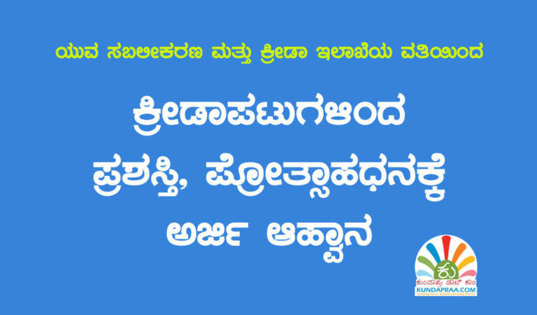 ಉಡುಪಿ: ಯುವ ಸಬಲೀಕರಣ ಮತ್ತು ಕ್ರೀಡಾ ಇಲಾಖೆಯ ವತಿಯಿಂದ ಅರ್ಹ ಸಾಧಕ ಕ್ರೀಡಾಪಟುಗಳು ಹಾಗೂ ಇತರರಿಂದ ವಿವಿಧ ಪ್ರಶಸ್ತಿ ಮತ್ತು ಪ್ರೋತ್ಸಾಹಧನಕ್ಕಾಗಿ ವೆಬ್ಸೈಟ್ https://sevasindhu.karnataka.gov.in ನಲ್ಲಿ ಆನ್ಲೈನ್ ಮೂಲಕ ಅರ್ಜಿ ಆಹ್ವಾನಿಸಲಾಗಿದೆ.