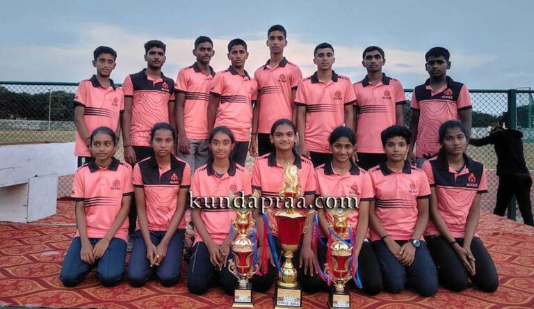 ಮೂಡುಬಿದಿರೆ: ಜಿಲ್ಲಾ ಪಂಚಾಯತ್ ಹಾಸನ ಹಾಗೂ ಶಾಲಾ ಶಿಕ್ಷಣ ಇಲಾಖೆ, ಹಾಸನ ಇವುಗಳ ಸಂಯುಕ್ತ ಆಶ್ರಯದಲ್ಲಿ ಜಿಲ್ಲಾ ಕ್ರೀಡಾಂಗಣದಲ್ಲಿ ನಡೆದ 14 ವರ್ಷ ವಯೋಮಿತಿಯ ಬಾಲಕ ಮತ್ತು ಬಾಲಕಿಯರ ಅಥ್ಲೆಟಿಕ್ಸ್ ಕ್ರೀಡಾಕೂಟದಲ್ಲಿ ದಕ್ಷಿಣ ಕನ್ನಡ ಜಿಲ್ಲೆಯನ್ನು ಪ್ರತಿನಿಧಿಸಿದ ಆಳ್ವಾಸ್ ಶಾಲೆಯ ಕ್ರೀಡಾಪಟುಗಳು ಒಟ್ಟು 12 ಚಿನ್ನ ಮತ್ತು 02 ಬೆಳ್ಳಿ ಪದಕಗಳೊಂದಿಗೆ ಒಟ್ಟು 14 ಪದಕಗಳನ್ನು ಗಳಿಸಿ, ದಕ್ಷಿಣ ಕನ್ನಡ ಜಿಲ್ಲೆ, ಬಾಲಕ ಬಾಲಕಿಯರ ವಿಭಾಗದಲ್ಲಿ ತಂಡ ಪ್ರಶಸ್ತಿಯ ಜೊತೆಗೆ ಸಮಗ್ರ ಪ್ರಶಸ್ತಿಯನ್ನು ಪಡೆದುಕೊಳ್ಳುವಲ್ಲಿ ಪ್ರಮುಖ ಪಾತ್ರವಹಿಸಿದ್ದಾರೆ.