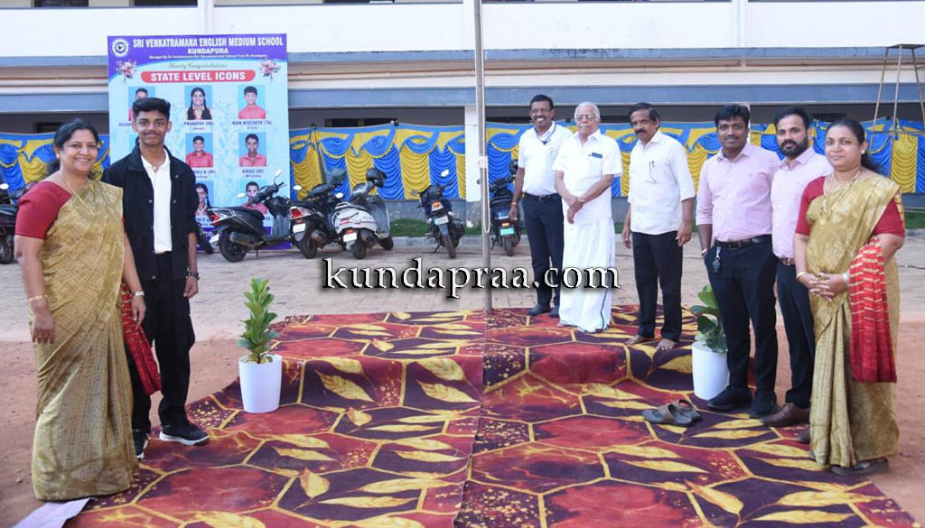 ಇಲ್ಲಿನ ಶ್ರೀ ವೆಂಕಟರಮಣ ಆಂಗ್ಲ ಮಾಧ್ಯಮ ಶಾಲೆಯ 37ನೇ ವಾರ್ಷಿಕೋತ್ಸವದ ಪ್ರಯುಕ್ತ ಸಂಸ್ಥೆಯ ಕಾರ್ಯದರ್ಶಿಯವರಾದ ಕೆ. ರಾಧಾಕೃಷ್ಣ ಶೆಣೈ ಅವರು ಧ್ವಜಾರೋಹಣ ಗೈದು ವಿದ್ಯಾರ್ಥಿಗಳಿಗೆ ಹಿತನುಡಿಗಳನ್ನು ತಿಳಿಸಿದರು.