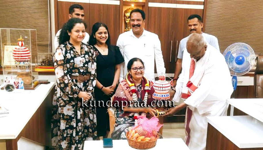 ರಾಷ್ಟ್ರ ಪ್ರಶಸ್ತಿ ಪುರಸ್ಕೃತ ಕೋಟೇಶ್ವರ ಲಕ್ಷ್ಮೀನಾರಾಯಣ ಆಚಾರ್ಯ, ಪುತ್ರ ರಾಜಗೋಪಾಲ್ ಆಚಾರ್ಯ ಜಿಲ್ಲಾಧಿಕಾರಿ ಅವರನ್ನು ಶಾಲು ಹೋದಿಸಿ ಫಲಪುಷ್ಭ ನೀಡಿ ಗೌರವಿಸಿದರು. ಈ ವೇಳೆ ರಾಜಗೋಪಾಲ ಆಚಾರ್ಯ ಪುತ್ರಿ ಹಾಗೂ ಸಹೋದರ ಉಪಸ್ಥಿತರಿದ್ದರು.