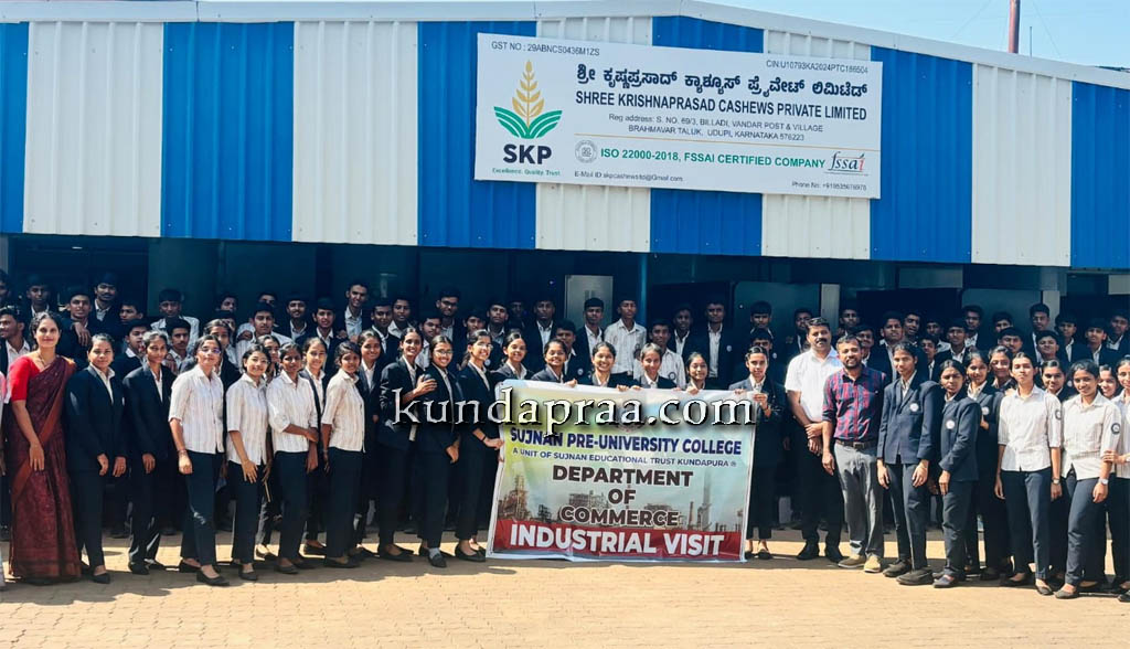 ಕುಂದಾಪುರ: ಸುಜ್ಞಾನ ಪದವಿಪೂರ್ವ ಕಾಲೇಜಿನ ವಾಣಿಜ್ಯ ವಿಭಾಗದ ವಿದ್ಯಾರ್ಥಿಗಳು ತಮ್ಮ ಶೈಕ್ಷಣಿಕ ಕಾರ್ಯಕ್ರಮದ ಭಾಗವಾಗಿ, ಮಂಗಳವಾರದಂದು ವಂಡಾರಿನ ‘ಕೃಷ್ಣ ಪ್ರಸಾದ್ ಕ್ಯಾಶ್ಯೂಸ್ ಪ್ರೈವೇಟ್ ಲಿಮಿಟೆಡ್’ ಕೈಗಾರಿಕಾ ಘಟಕಕ್ಕೆ ಭೇಟಿ ನೀಡಿದರು.