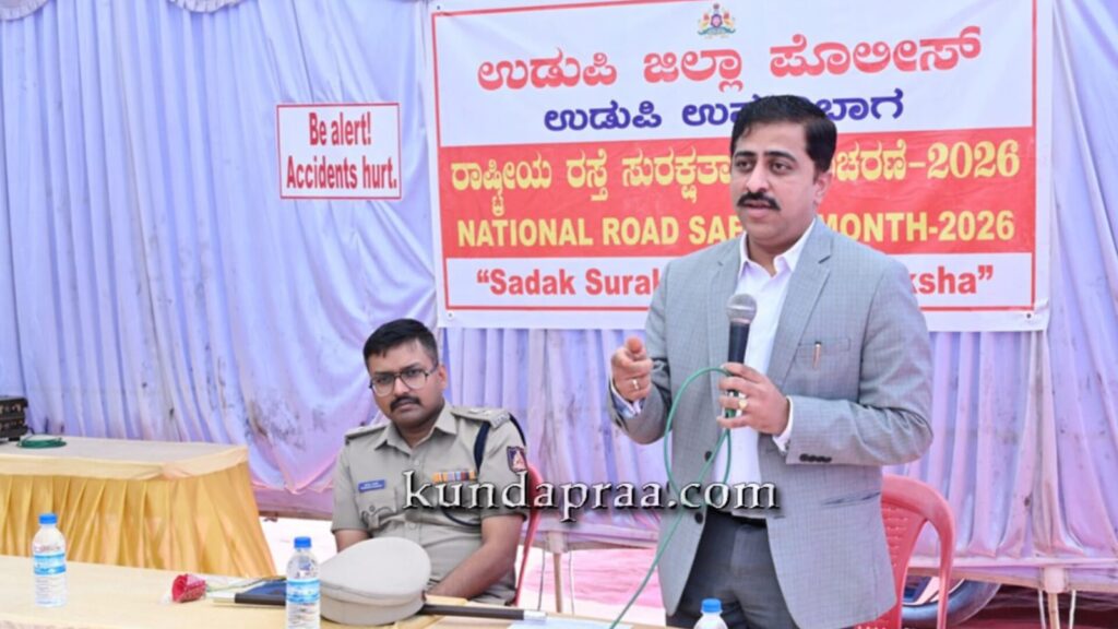 ಉಡುಪಿ: ರಾಷ್ಟ್ರೀಯ ರಸ್ತೆ ಸುರಕ್ಷತಾ ಸಪ್ತಾಹ -2026 ಇದರ ಅಂಗವಾಗಿ ಉಡುಪಿ ಜಿಲ್ಲಾ ಪೊಲೀಸ್ ವತಿಯಿಂದ “ಸಡಕ್ ಸುರಕ್ಷಾ ಜೀವನ್ ರಕ್ಷಾ” ಎಂಬ ಘೋಷಣೆ ಅಡಿಯಲ್ಲಿ ರಸ್ತೆ ಸುರಕ್ಷತಾ ಸಪ್ತಾಹ ಅಂಗವಾಗಿ ರಾಷ್ಟ್ರೀಯ ಹೆದ್ದಾರಿಯಲ್ಲಿ ವಾಹನ ಚಾಲಕರುಗಳಿಗೆ ಚಹಾ ತಿಂಡಿ ಮತ್ತು ಹೂ ಗುಚ್ಚಗಳನ್ನು ನೀಡುವುದರ ಮೂಲಕ ಅವರಲ್ಲಿ ರಸ್ತೆ ಸಂಚಾರ ನಿಯಮಗಳನ್ನು ಪಾಲಿಸುವುದರ ಬಗ್ಗೆ ಮತ್ತು ವಾಹನ ಚಲಾಯಿಸುವ ಬಗ್ಗೆ ಮತ್ತು ಅಪಘಾತ ನಿಯಂತ್ರಿಸುವ ಬಗ್ಗೆ ಅರಿವು ಮೂಡಿಸುವ ಕಾರ್ಯ ರಾಷ್ಟ್ರೀಯ ಹೆದ್ದಾರಿ -66 ಸಂತೆಕಟ್ಟೆಯಲ್ಲಿ ನಡೆಯಿತು.