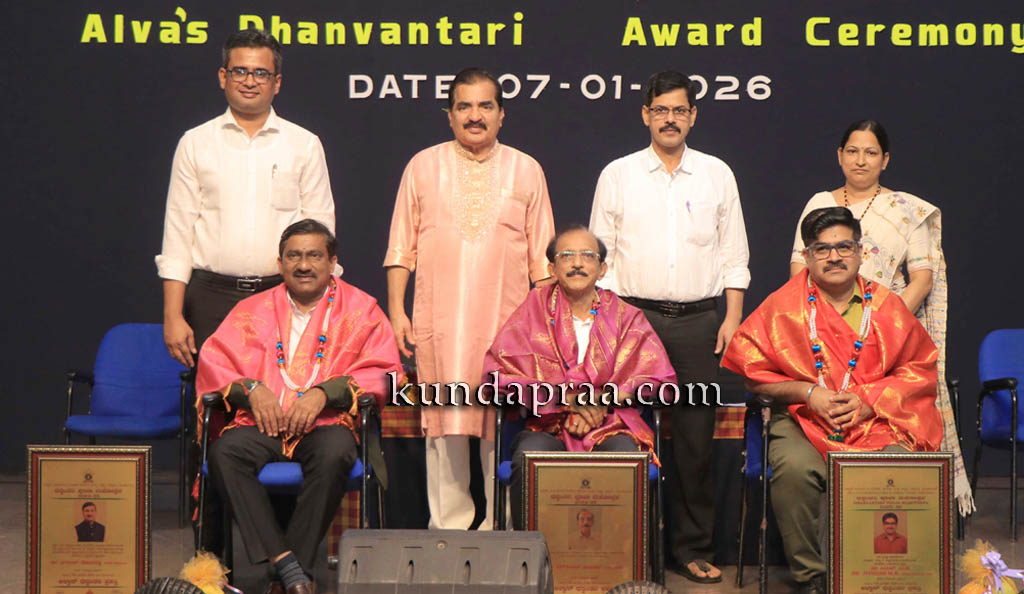 ಮೂಡುಬಿದಿರೆ: ಆಳ್ವಾಸ್ ಶಿಕ್ಷಣ ಪ್ರತಿಷ್ಠಾನ ರಿ., ಮೂಡುಬಿದಿರೆ ಹಾಗೂ ಆಳ್ವಾಸ್ ಆಯುರ್ವೇದ ಮೆಡಿಕಲ್ ಕಾಲೇಜು ಮತ್ತು ಆಸ್ಪತ್ರೆ ವತಿಯಿಂದ ಧನ್ವಂತರಿ ಪೂಜಾ ಮಹೋತ್ಸವ, ಶಿಷ್ಯೋಪನಯನ ಸಂಸ್ಕಾರ, ಆಳ್ವಾಸ್ ಧನ್ವಂತರಿ ಪ್ರಶಸ್ತಿ ಪ್ರದಾನ ಮತ್ತು ಕಾಲೇಜು ವಾರ್ಷಿಕೋತ್ಸವ ಸಮಾರಂಭ ಬುಧವಾರ ಕಾಲೇಜಿನ ಆವರಣದಲ್ಲಿ ನಡೆಯಿತು.
