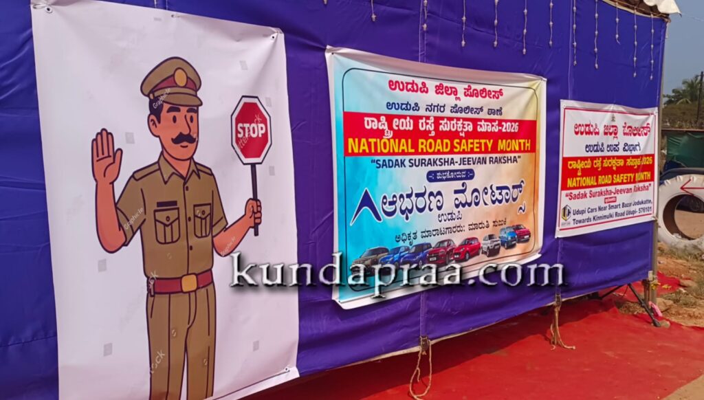 ಉಡುಪಿ: ರಾಷ್ಟ್ರೀಯ ರಸ್ತೆ ಸುರಕ್ಷತಾ ಸಪ್ತಾಹ -2026ರ ಅಂಗವಾಗಿ ಉಡುಪಿ ಜಿಲ್ಲಾ ಪೊಲೀಸ್ ಸಾರ್ವಜನಿಕರಲ್ಲಿ ಸಂಚಾರ ನಿಯಮಗಳ ಬಗ್ಗೆ ಅರಿವು ಮೂಡಿಸುವ ಉದ್ದೇಶದೊಂದಿಗೆ ಜಿಲ್ಲಾದ್ಯಂತ ಇಲಾಖೆ ಮೂಲಕ ವಿವಿಧ ಕಾರ್ಯಕ್ರಮಗಳನ್ನು ಹಮ್ಮಿಕೊಂಡಿದೆ. ಈ ನಡುವೆ ಸಂತೆಕಟ್ಟೆಯ ರಾಷ್ಟ್ರೀಯ ಹೆದ್ದಾರಿ ಪಕ್ಕದಲ್ಲಿ ಇರಿಸಲಾದ ಪೊಲೀಸ್ ಟೆಂಟ್ ಹೌಸ್ ಮಾತ್ರ ಸಾರ್ವಜನಿಕರ ಗಮನ ಸೆಳೆಯುತ್ತಿದೆ.