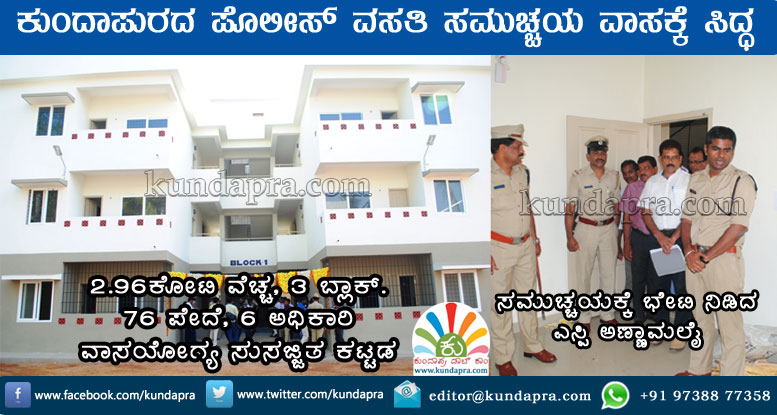 ಕರ್ನಾಟಕ ರಾಜ್ಯ ಪೊಲೀಸ್ ವಸತಿ ಮತ್ತು ಮೂಲಭೂತ ಸೌಲಭ್ಯ ಅಭಿವೃದ್ಧಿ ನಿಗಮದಿಂದ ಪೊಲೀಸ್ ಗೃಹ 2020ಯೋಜನೆಯ ಅನ್ವಯ ಕುಂದಾಪುರದ ಫೆರಿ ರಸ್ತೆಯಲ್ಲಿ ನಿರ್ಮಾಣಗೊಂಡ ಪೊಲೀಸ್ ವಸತಿ ಸಮುಚ್ಛಯ ಸಾಂಕೇತಿಕವಾಗಿ ಉದ್ಘಾಟಿಸಿದ ಉಡುಪಿ ಜಿಲ್ಲಾ ಪೊಲೀಸ್ ವರಿಷ್ಠಾಧಿಕಾರಿ ಅಣ್ಣಾಮಲೈ ಸುದ್ಧಿಗಾರರ ಜೊತೆ ಮಾತನಾಡಿ, ಕುಂದಾಪುರದ ಪೊಲೀಸ್ ಸಿಬ್ಬಂದಿಗಳ ವಸತಿ ಸಮಸ್ಯೆ ಹಲವು ದಿನಗಳಿಂದ ಇದ್ದು ಪೊಲೀಸ್ ಸಿಬ್ಬಂದಿಗಳು ಕ್ವಾರ್ಟಸ್ ಇಲ್ಲದೇ ಬೇರೆ ಬೇರೆ ಕಡೆ ವಸತಿ ಕಂಡುಕೊಂಡು ಕಷ್ಟ ಪಡುತ್ತಿದ್ದರು. ಸದ್ಯದಲ್ಲೇ ಆ ಸಮಸ್ಯೆ ಪರಿಹಾರಗೊಳ್ಳಲಿದೆ. ಮೊದಲ ಹಂತದಲ್ಲಿ ಒಂದು ಸಂಕೀರ್ಣ ಆಫೀಸರ್ ಬ್ಲಾಕ್, ಉಳಿದ ಸಂಕೀರ್ಣಗಳಲ್ಲಿ 36 ಸಿಬ್ಬಂದಿಗಳ ಕ್ವಾರ್ಟಸ್ ನಿರ್ಮಾಣ ಮಾಡಲಾಗಿದೆ. ಸೇವೆ ಹಿರಿತನದ ಆಧಾರದಲ್ಲಿ ಸಿಬ್ಬಂದಿಗಳಿಗೆ ಕ್ವಾರ್ಟಸ್ ಒದಗಿಸಲು ಡಿಎಸ್ಪಿ ಪಟ್ಟಿ ಸಿದ್ಧಪಡಿಸಿದ್ದಾರೆ. ಅತ್ಯಂತ ಸುವ್ಯವಸ್ಥಿತವಾಗಿ ಕಟ್ಟಡ ನಿರ್ಮಾಣ ಮಾಡಲಾಗಿದ್ದು, ಆಕರ್ಷಕ ವಿನ್ಯಾಸ, ಸೋಲಾರ್ ವಾಟರ್ ಹೀಟರ್, ಅತ್ಯಾಧುನಿಕ ಅಡುಗೆ ಮನೆ, ವಾಹನ ಪಾರ್ಕಿಂಗ್ ವ್ಯವಸ್ಥೆಯನ್ನು ಸಂಕೀರ್ಣ ಹೊಂದಿದೆ. ಶೀಘ್ರವೇ ಸುತ್ತ ಅವರಣಗೋಡೆ, ಇಂಟರ್ ಲಾಕ್ ಅಳವಡಿಕೆ ಆಗಲಿದೆ. ಎರಡನೇ ಹಂತದ ಕಾಮಗಾರಿ ಪ್ರಗತಿಯಲ್ಲಿದ್ದು ಮಾರ್ಚ್ನಲ್ಲಿ ಪೂರ್ಣಗೊಳ್ಳಲಿದೆ. (ಕುಂದಾಪ್ರ ಡಾಟ್ ಕಾಂ ಸುದ್ದಿ)