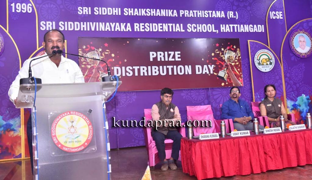 ಕುಂದಾಪುರ: ಹಟ್ಟಿಯಂಗಡಿ ಶ್ರೀ ಸಿದ್ಧಿವಿನಾಯಕ ವಸತಿ ಶಾಲೆ (ಪ್ರಾಥಮಿಕ ಶಾಲಾ ವಿಭಾಗ) ಯಲ್ಲಿ ಶಾಲಾ ವಾರ್ಷಿಕೋತ್ಸವದ ಅಂಗವಾಗಿ ಹಮ್ಮಿಕೊಂಡಿದ್ದ ವಿವಿಧ ಸಾಂಸ್ಕೃತಿಕ ಹಾಗೂ ಕ್ರೀಡಾ ಸ್ಪರ್ಧೆಗಳಲ್ಲಿ ವಿಜೇತರಾದ ವಿದ್ಯಾರ್ಥಿಗಳನ್ನು ಪ್ರೋತ್ಸಾಹಿಸಲು ಬಹುಮಾನ ವಿತರಣಾ ಸಮಾರಂಭವನ್ನು ಹಮ್ಮಿಕೊಳ್ಳಲಾಯಿತು.