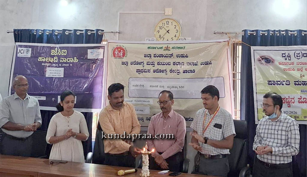 ಕುಂದಾಪುರ: ಕರ್ನಾಟಕ ಸರ್ಕಾರ ಉಡುಪಿ ಜಿಲ್ಲಾ ಅಂಧತ್ವ ನಿವಾರಣಾ ವಿಭಾಗ ಉಡುಪಿ ಜಿಲ್ಲೆ, ಆರೋಗ್ಯ ಮತ್ತು ಕುಟುಂಬ ಕಲ್ಯಾಣ ಇಲಾಖೆ, ಪ್ರಾಥಮಿಕ ಆರೋಗ್ಯ ಕೇಂದ್ರ ಹಾಲಾಡಿ, ಗ್ರಾಮ ಪಂಚಾಯತ್ ಹಾಲಾಡಿ, ಜೆಸಿಐ ಹಾಲಾಡಿ- ವಾರಾಹಿ, ಪಾರ್ವತಿ ಮಹಾಬಲ ಶೆಟ್ಟಿ ಸ್ಮಾರಕ ಕಣ್ಣಿನ ಆಸ್ಪತ್ರೆ, ಶಿರೂರು-ಮುದ್ದುಮನೆ ಇವರ ಸಂಯುಕ್ತ ಆಶ್ರಯದಲ್ಲಿ ಉಚಿತ ನೇತ್ರ ತಪಾಸಣಾ ಶಿಬಿರವು ಮಂಗಳವಾರದಂದು ಹಾಲಾಡಿಯ ಗ್ರಾಮ ಪಂಚಾಯತ್ ಸಭಾಭವನದಲ್ಲಿ ನಡೆಯಿತು.